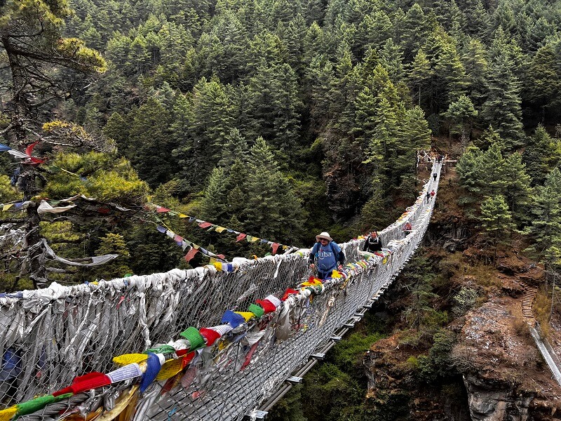 The trail is going to be long yet easy today. Continue trekking from Namche and reach Syangboche. From here, the trail takes you to Kyangjuma where you will get to see Mt. Everest (8,848 m), Mt. Lhotse (8,516 m), and Mt. AmaDablam (6,812 m). Further, trekking through lush pine forests, you will walk on a steep trail and reach PungkiThanka. Trekking along the right side of DudhKoshiriver, you will gradually ascend to Tengboche through beautiful forests of blue pines and rhododendrons. You will visit the region's oldest and biggest monastery here, Tengboche monastery.