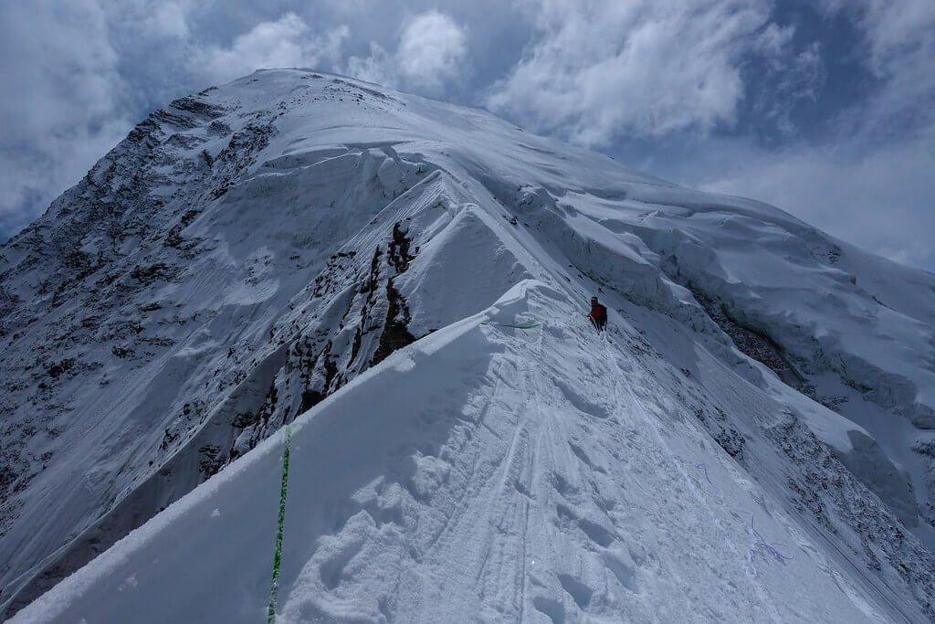 From base camp, climbing involves traversing steep ridges, negotiating crevasses, and climbing technical ice walls to reach the summit. The climb is challenging and requires technical mountaineering skills, endurance, and adaptation to high altitude.