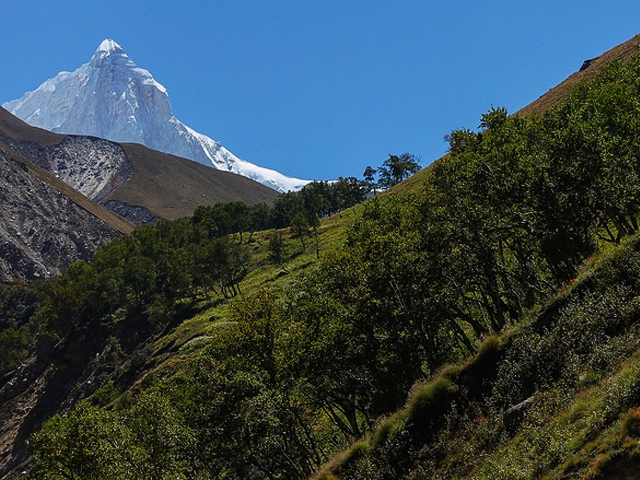 The day will begin with a hike through fir forests before crossing the Kedar Gorge to reach the camp. We will trek 8 km (5-6 hrs) as we follow the Kedar Ganga (Lord Shiva's contribution to Bhagirathi). Overnight stay in tents.